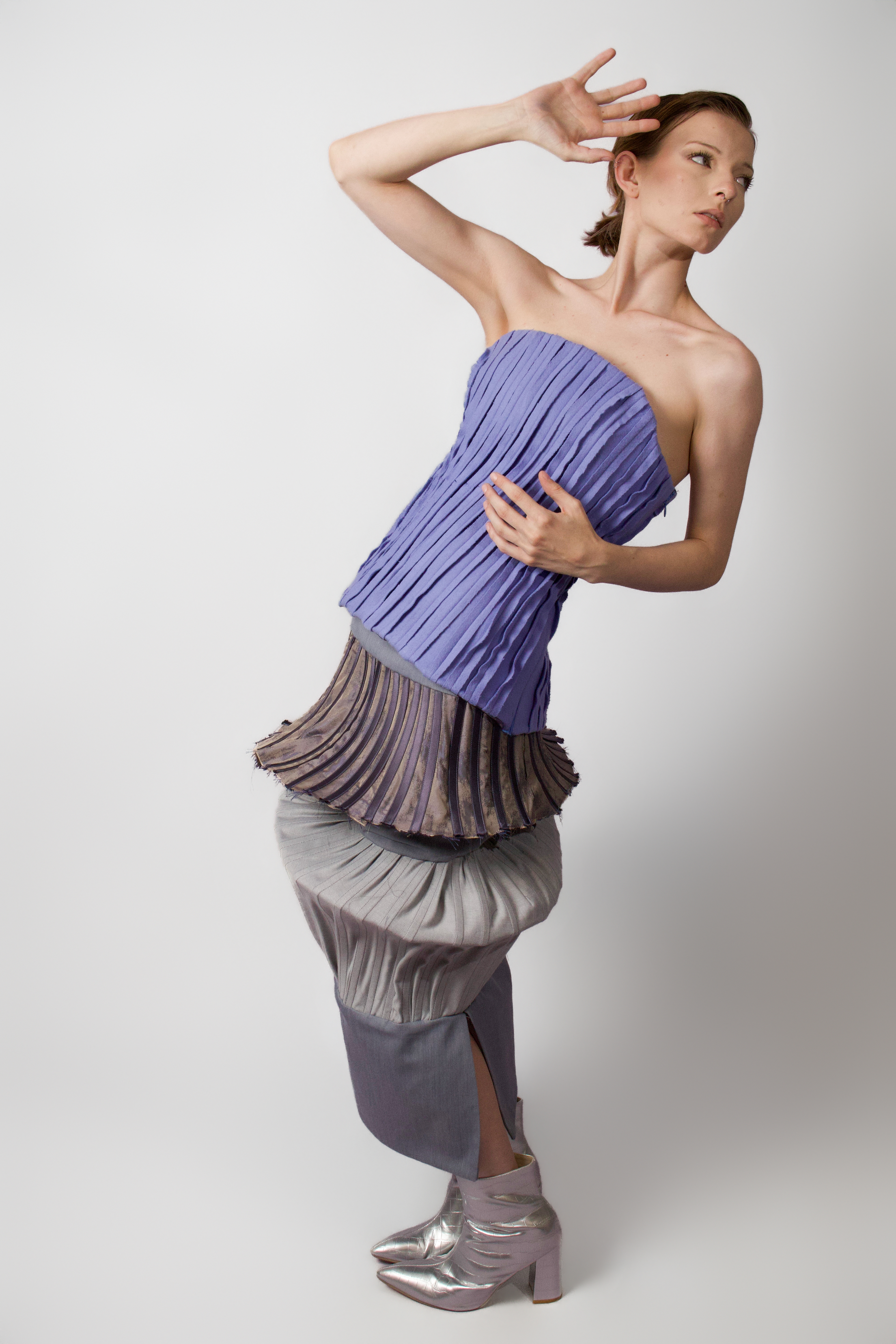 With a focus on sustainable fashion, she utilizes biodegradable and natural materials while incorporating inventive techniques in fabric manipulation and experimental textile development. Annabelle’s skills in combining diverse fabrications demonstrate a refined sensibility for developing unique colour palettes and inventive pattern designs.