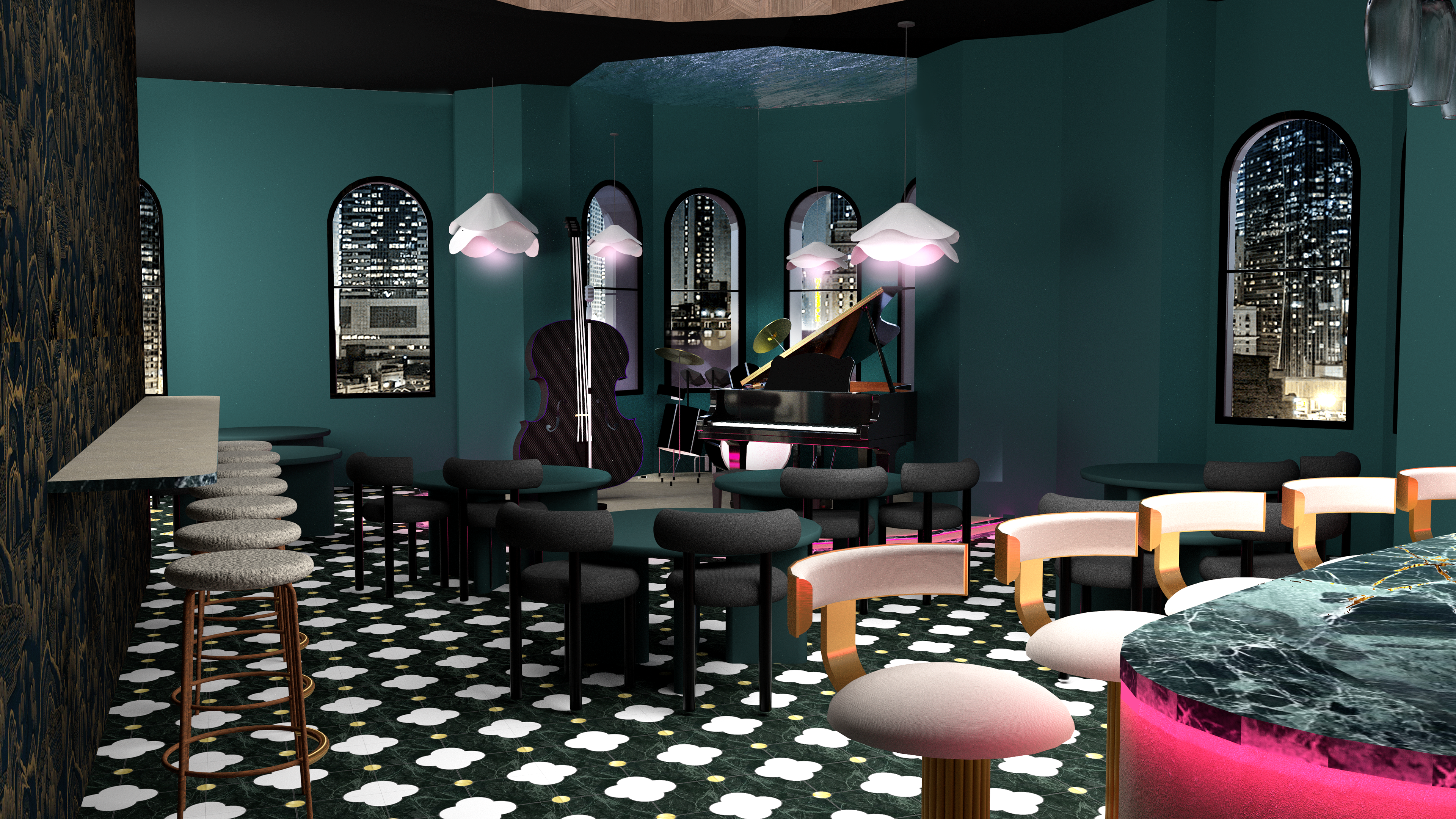 art through its interior design. Set in the iconic former Kings Hotel on Pitt Street Mall, this space will evoke reaction from its street-side installation spaces, inspiring gallery, captivating performance space and roof-top bar. The client, Judith Neilson, is the owner of Sydney’s White Rabbit Gallery, a devoted humanitarian and patron of the arts and architecture. Therefore, Rabbit’s Refuge will showcase Southeast Asian artists, with profits going towards the International Rescue Committee. The site’s original retail windows have been re-purposed to art installation spaces where passers-by can see the unique displays, whether their visit be intentional or otherwise. The gallery on the first floor aims to create a space of contemplation and reflection for the changing exhibitions hosted there, flooded with natural light from the heritage windows. As the customer continues down this rabbit hole and ascends to the second and third floors, they are met with an art-deco-inspired jazz bar, offering a 1920s speak-easy atmosphere with Southeast Asian influences. Finally, the customer emerges to the artfilled, roof-top space, where the eye-catching wall murals and luxe materiality backdrop their view of the city.