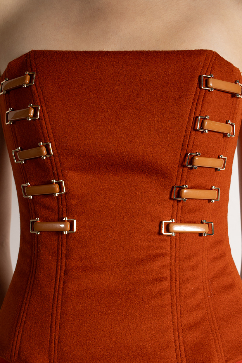 Each look fuses corset and sportswear archetypes, showcasing utilitarian forms and