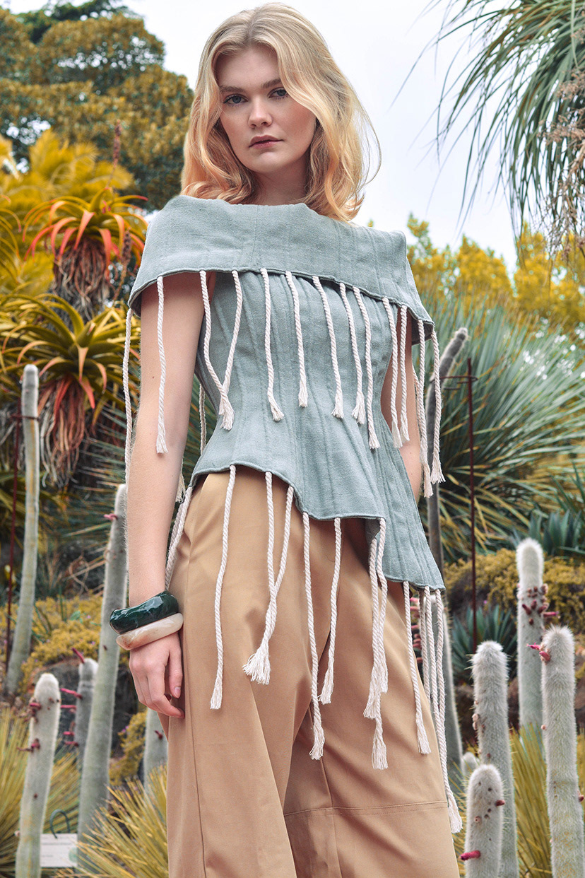 Inspired by modernist artists such as Ruth Asawa and Barbara Hepworth, Kiera draws upon their explorations of organic form and texture, applying these creative principles to her approach to silhouette and detail. Through a meticulous design process, Kiera produces garments that are both thoughtfully conceived and technically resolved.