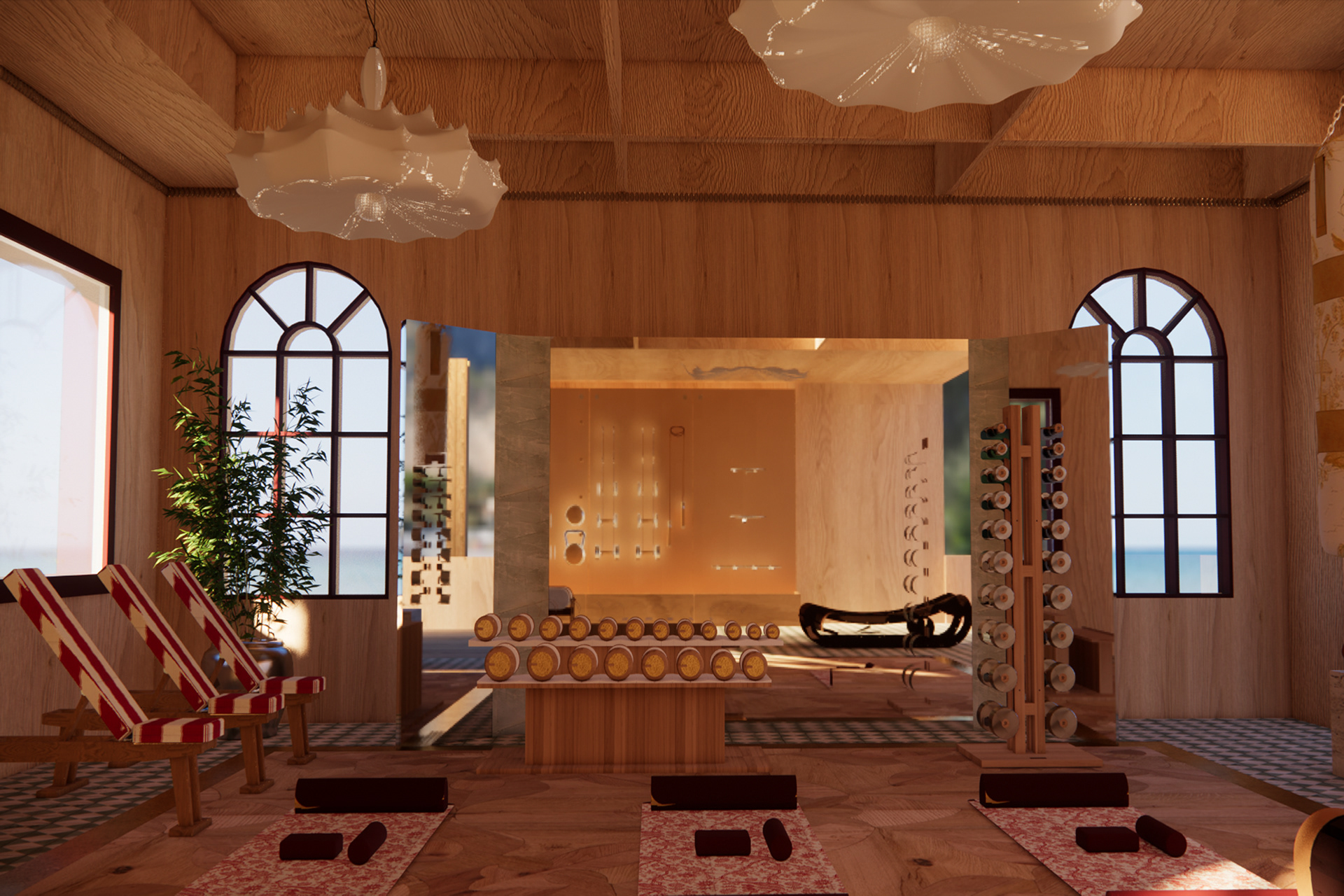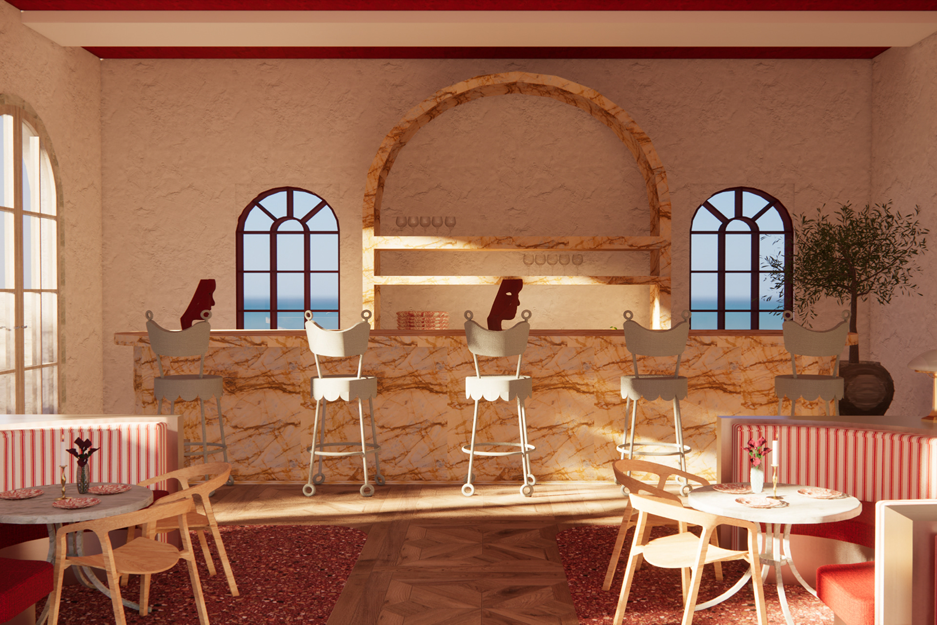 Salina is a social wellness centre that blends Mediterranean charm with the relaxed coastal character of Byron Bay. The design is inspired by Slim Aarons’ leisure photography and the visual atmosphere of HBO’s The White Lotus, creating a setting that feels stylish, warm and welcoming. A palette of red, green, pink and yellow brings together Mediterranean colour traditions with the natural brightness of Byron Bay, giving the space an uplifting and joyful identity. To realize this vision, the interiors feature textured white rendered walls, natural stone tiling, with rounded edges, establishing a sophisticated yet tactile environment that encourages relaxed lingering. The design of Salina reimagines wellness as something shared rather than experienced alone and celebrates the idea that being together, connecting and enjoying good company can support wellbeing in a deeper and more meaningful way. Salina is a place where wellness feels natural because it is lived together.