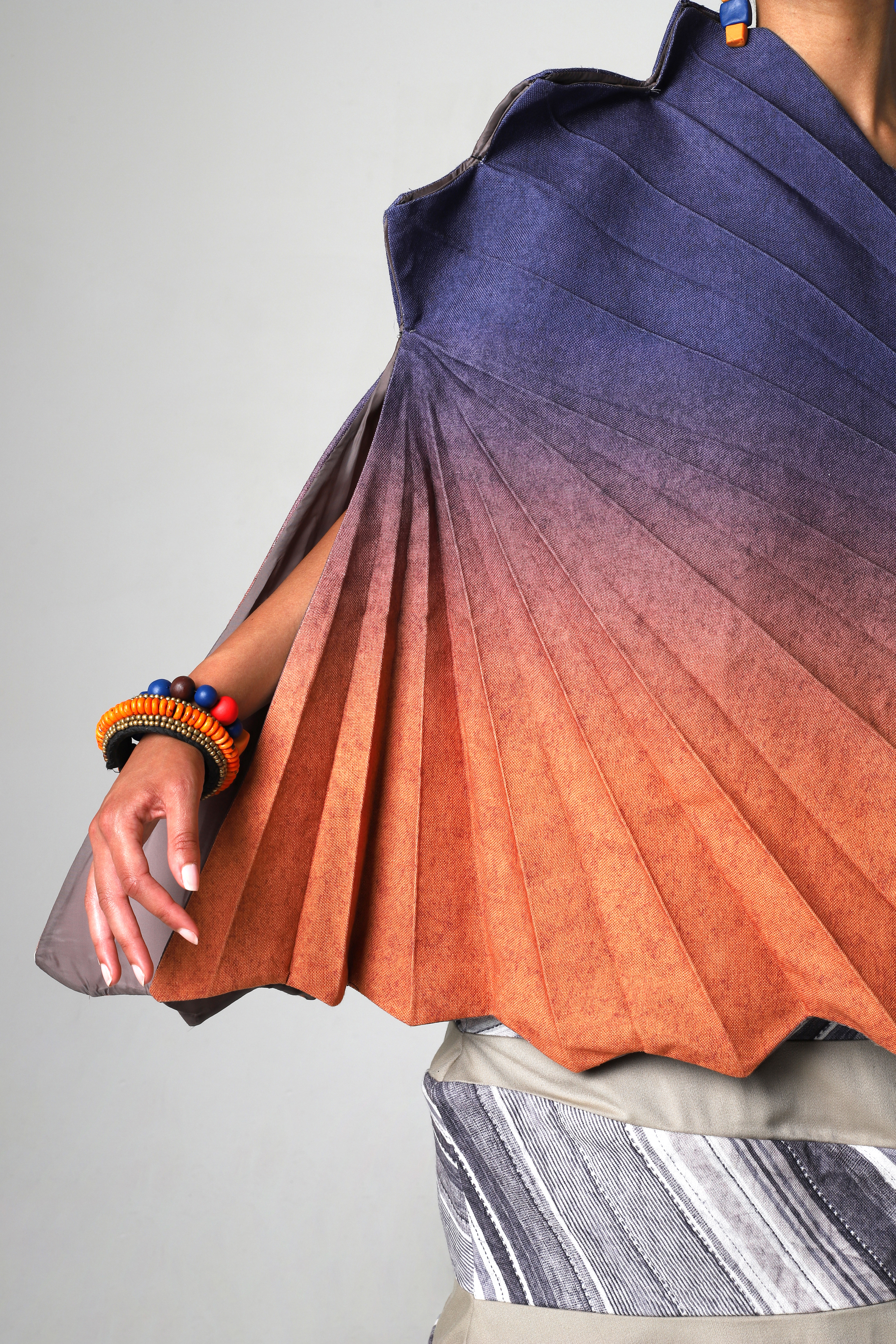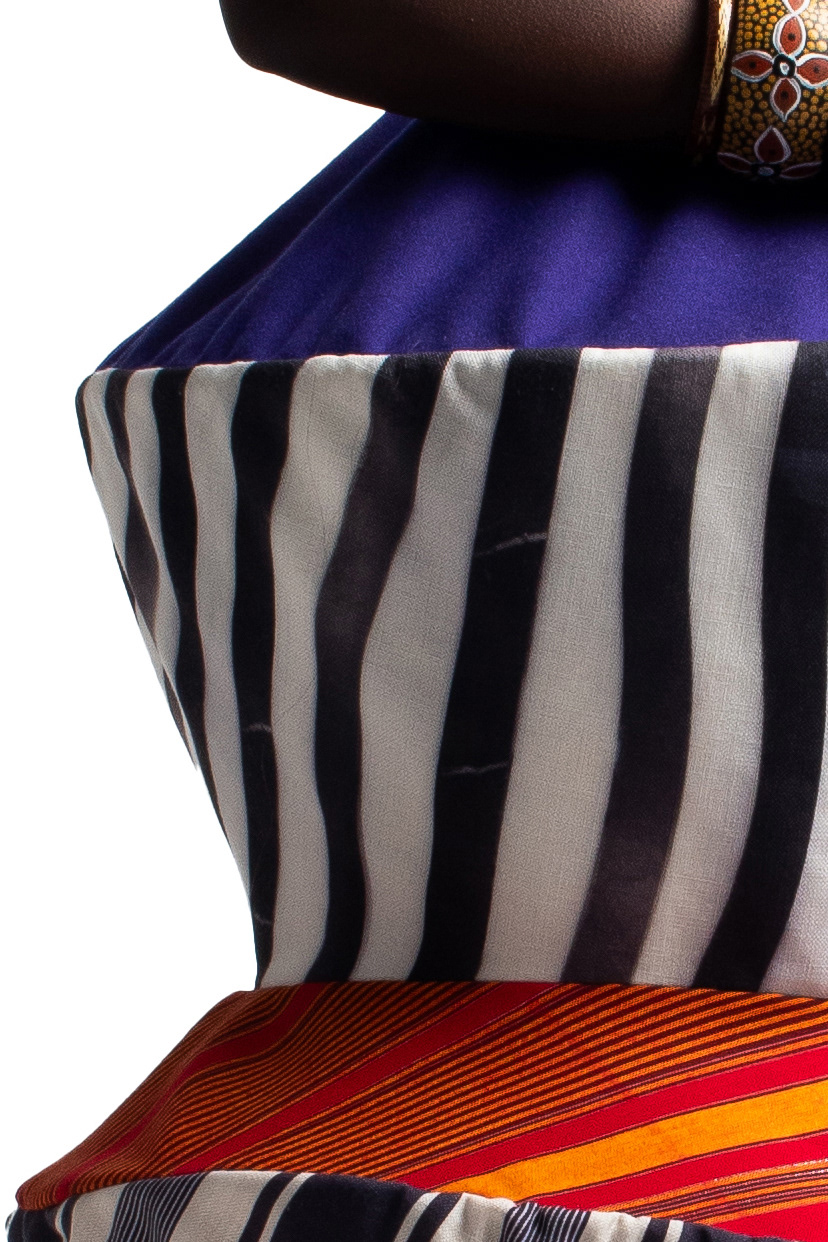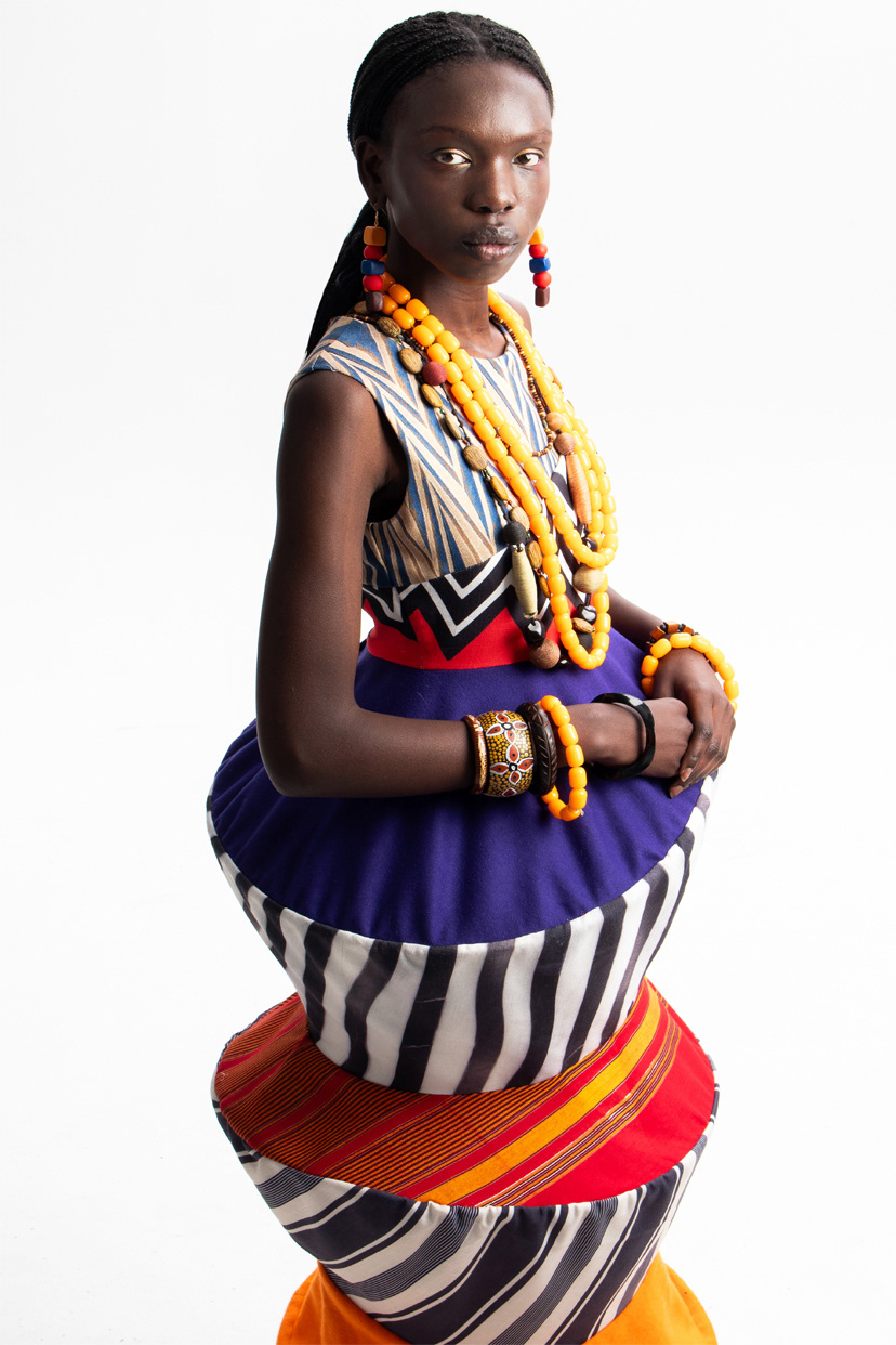 ‘Intertwine’ is a collection that takes inspiration from African artefacts and the ancient form art of origami – creating unexpected fusion between two history-rich cultures. The collection is made up of four pieces, three bodies, which is designed to reject the natural body as the ideal silhouette. A variety of prints, textiles and textures are incorporated and intertwined throughout these garments.