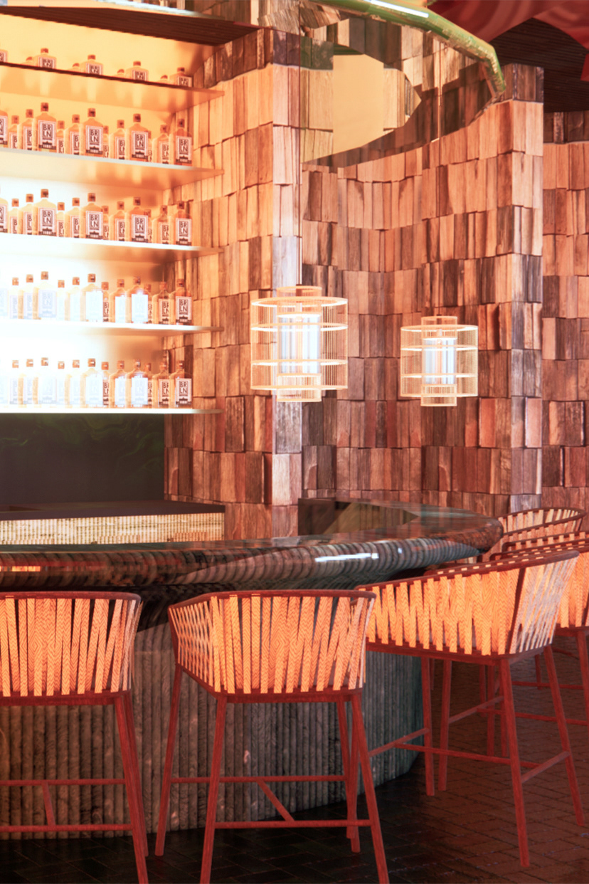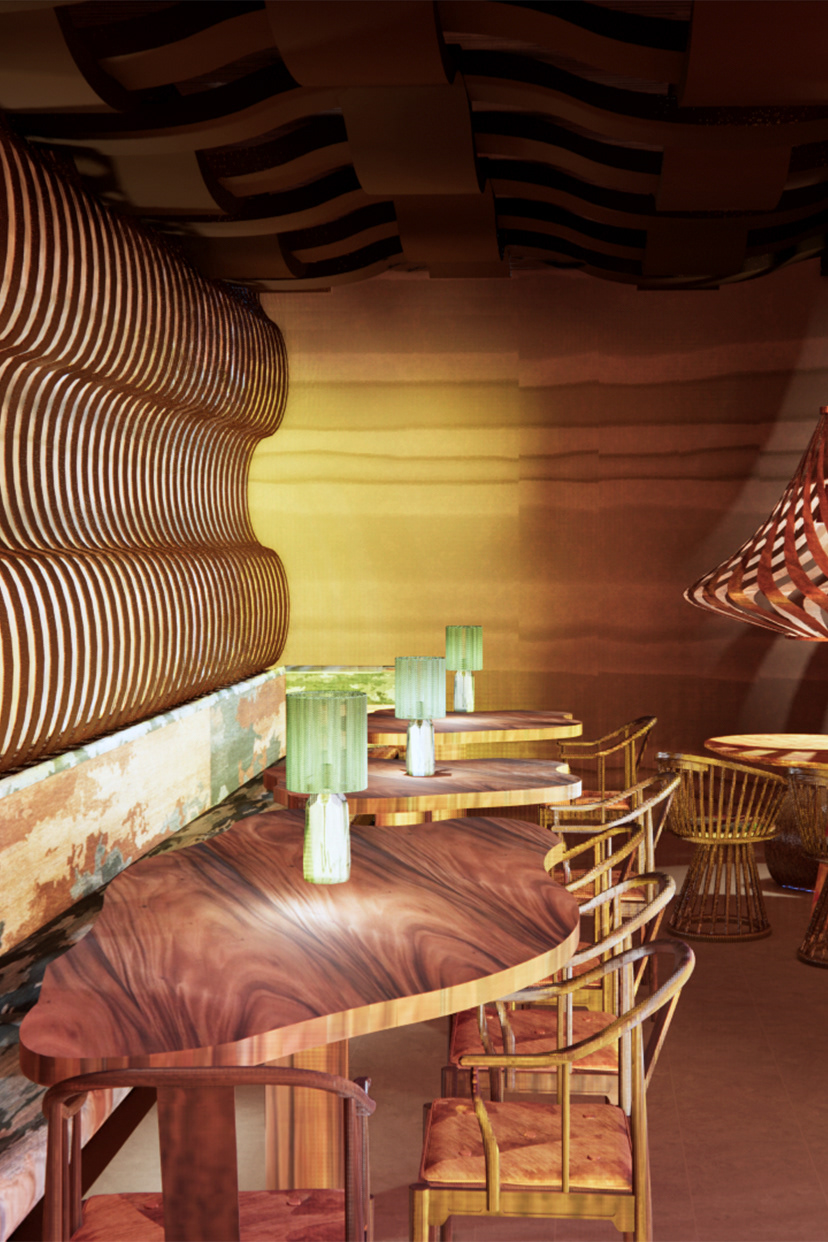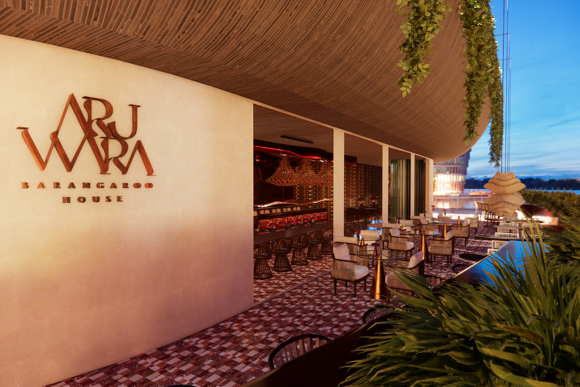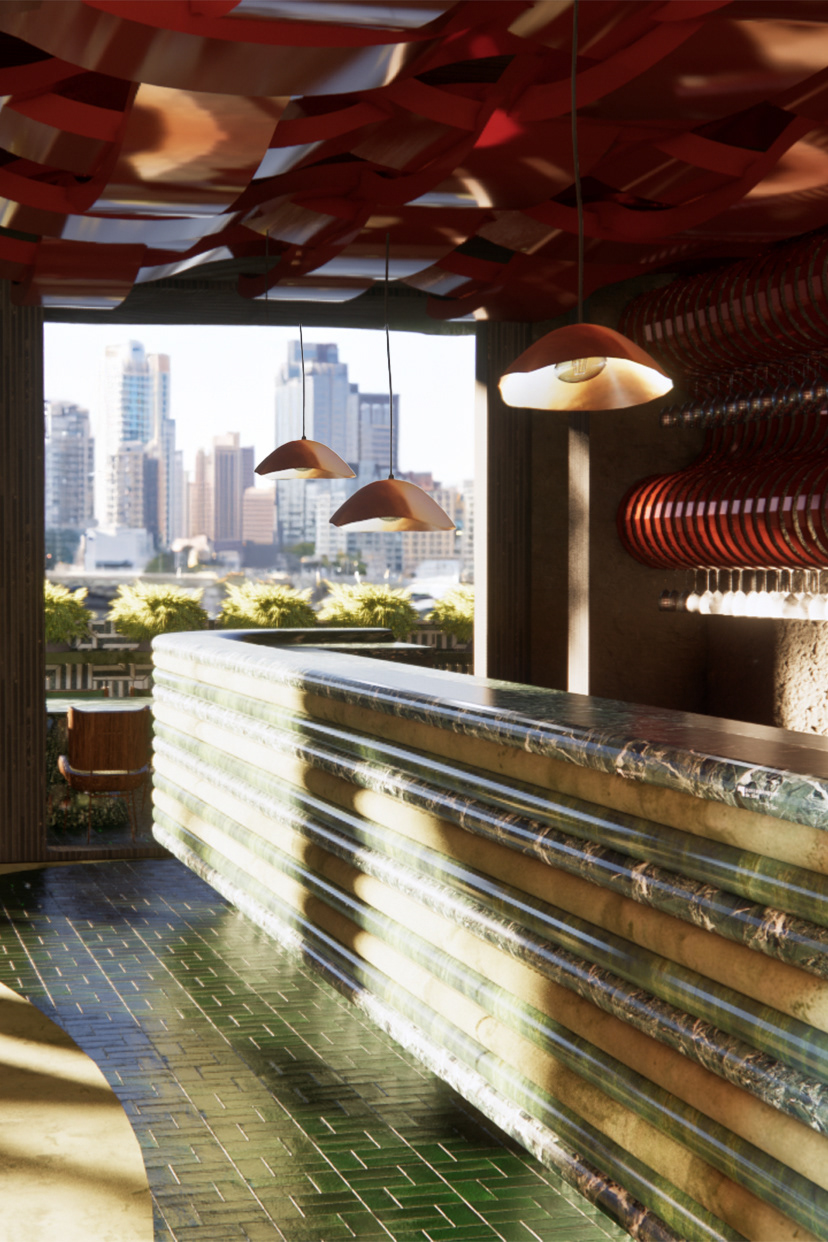 Aru Wara, meaning “Woven Water” in Tok Pisin, transforms Barangaroo House into a refined dining space celebrating the cultural and natural heritage of Australia and Papua New Guinea. Inspired by water’s fluidity, the design evokes movement, tranquility, and connection, merging traditional Papua New Guinean craftsmanship with modern Australian aesthetics. Hand-woven textures and sustainable materials like timber and recycled glass balance the organic with the refined, reflecting Barangaroo’s historic ties to Sydney Harbour. Light and shadow play across textured surfaces, inviting sensory exploration. Aru Wara offers an immersive journey, honoring the “woven waters” uniting these regions.