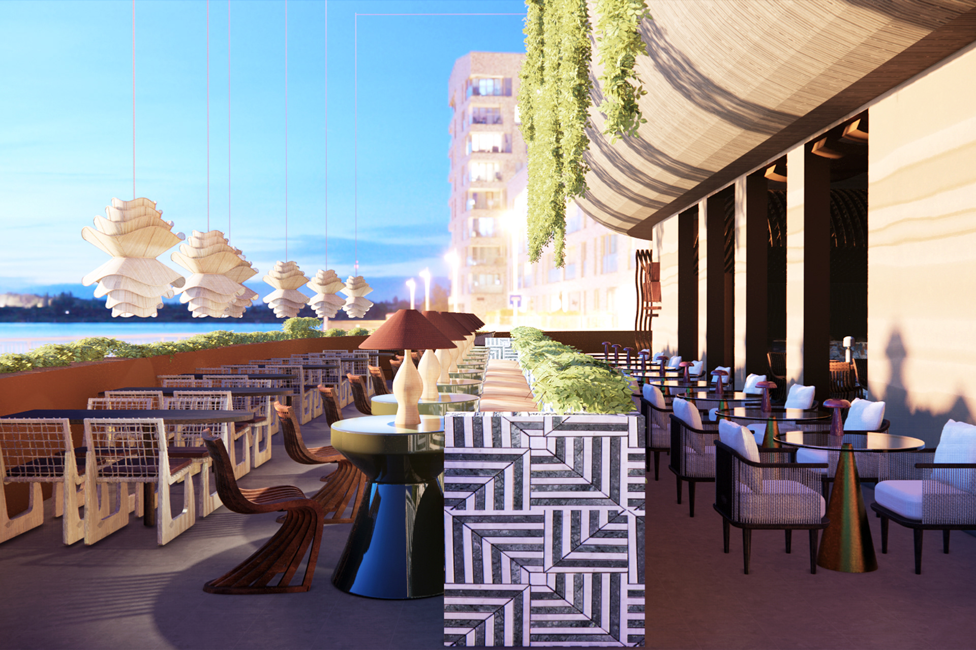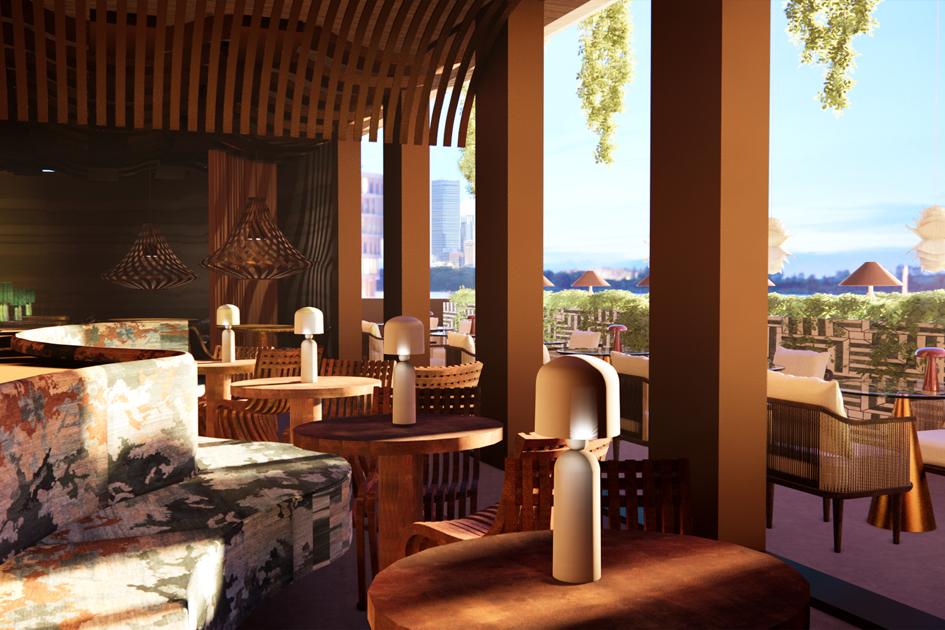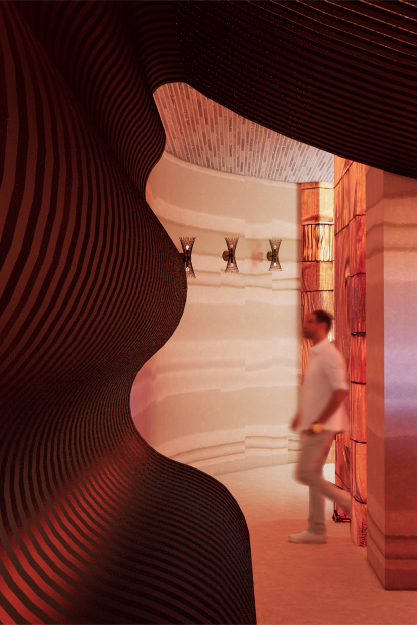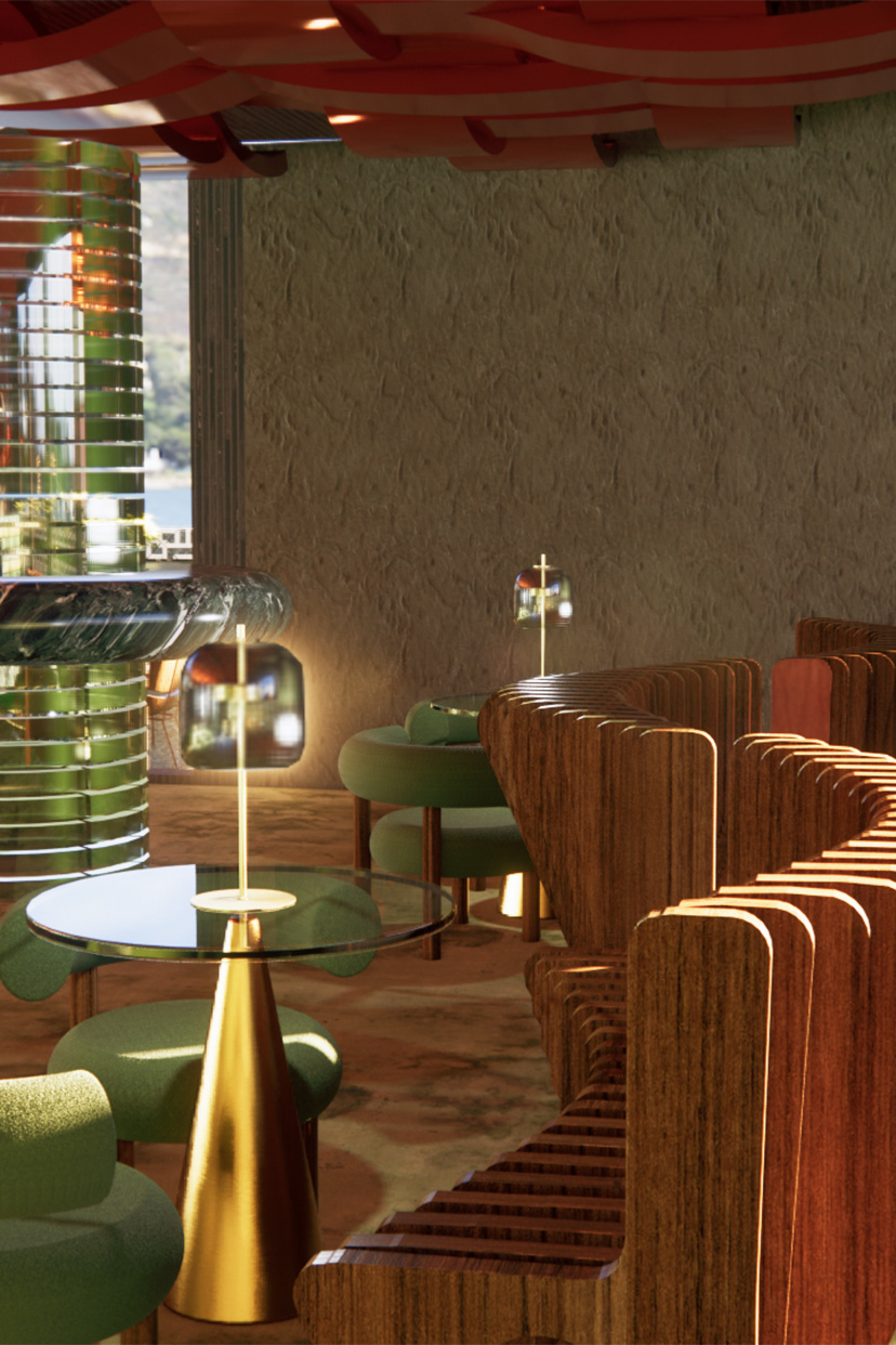 Aru Wara, meaning “Woven Water” in Tok Pisin, transforms Barangaroo House into a refined dining space celebrating the cultural and natural heritage of Australia and Papua New Guinea. Inspired by water’s fluidity, the design evokes movement, tranquility, and connection, merging traditional Papua New Guinean craftsmanship with modern Australian aesthetics. Hand-woven textures and sustainable materials like timber and recycled glass balance the organic with the refined, reflecting Barangaroo’s historic ties to Sydney Harbour. Light and shadow play across textured surfaces, inviting sensory exploration. Aru Wara offers an immersive journey, honoring the “woven waters” uniting these regions.