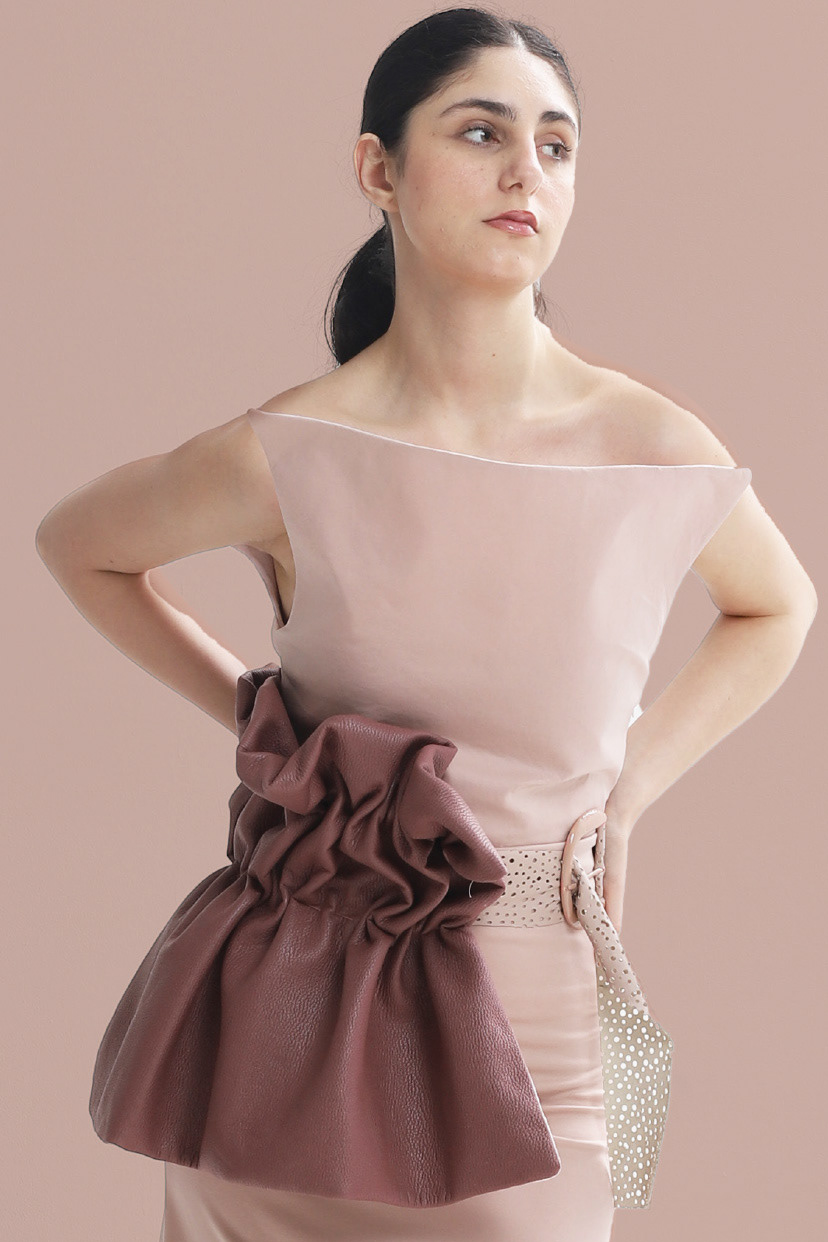 sustainable innovation, technical garment construction, and conceptual storytelling. Her
